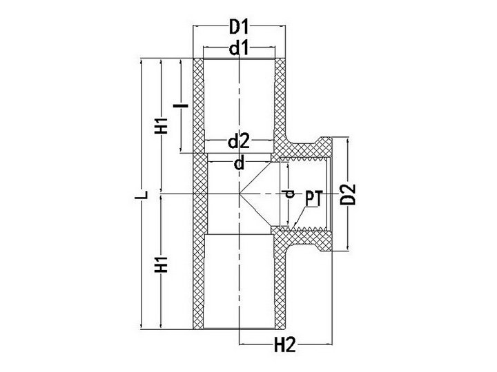 | SIZE | d1 | d2 | I | D1 | D2 | d | H1 | H2 | L | PT(牙/寸) |