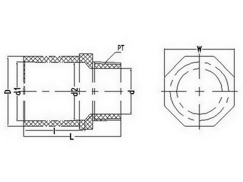 | SIZE | d1 | d2 | I | D | d | L | W | PT(牙/寸) |